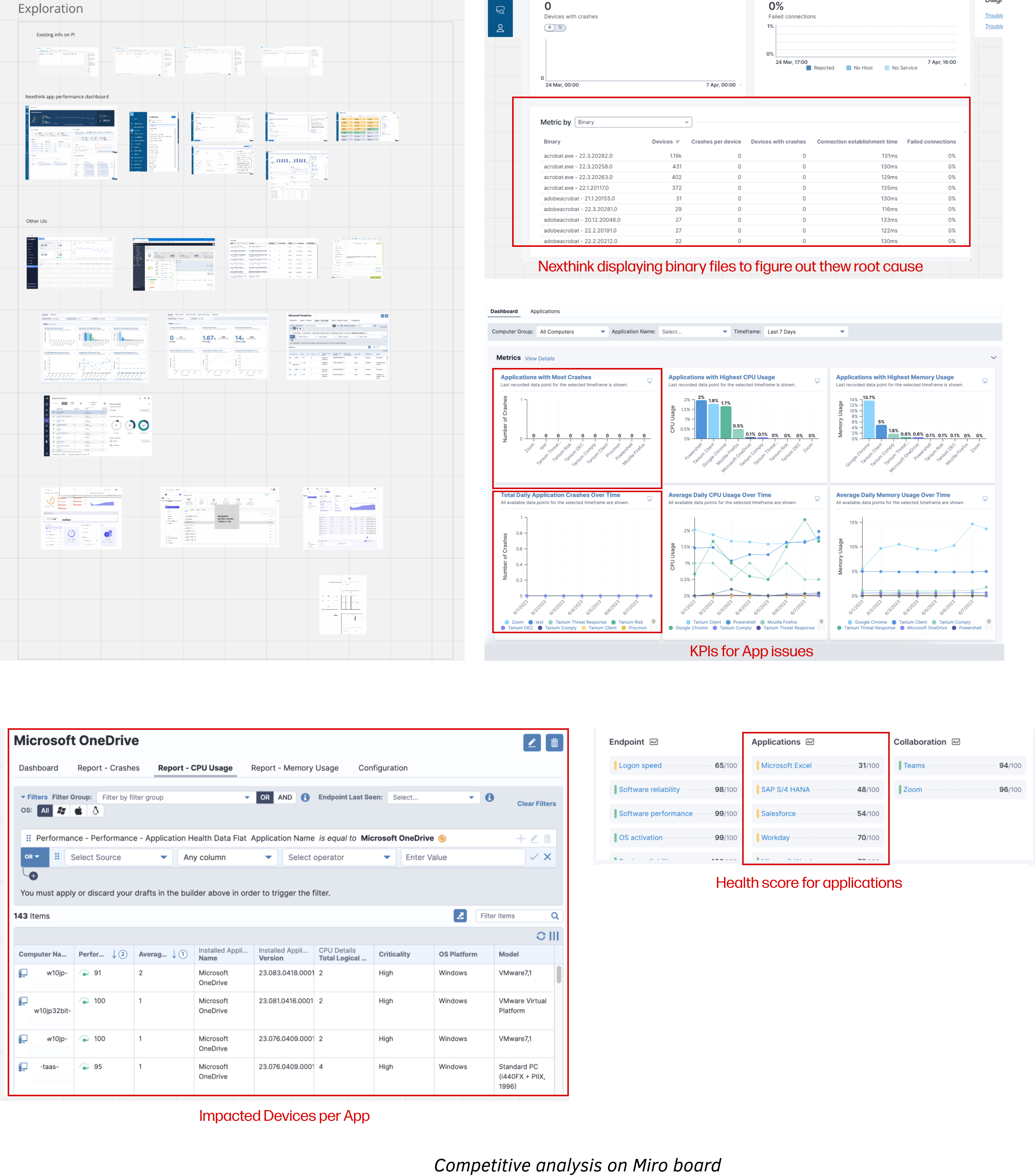 - Next, I analyzed the competitors like Nexthink, 1E, Tanium etc. and I figured it might be important for the IT admins to know important KPIs such as-