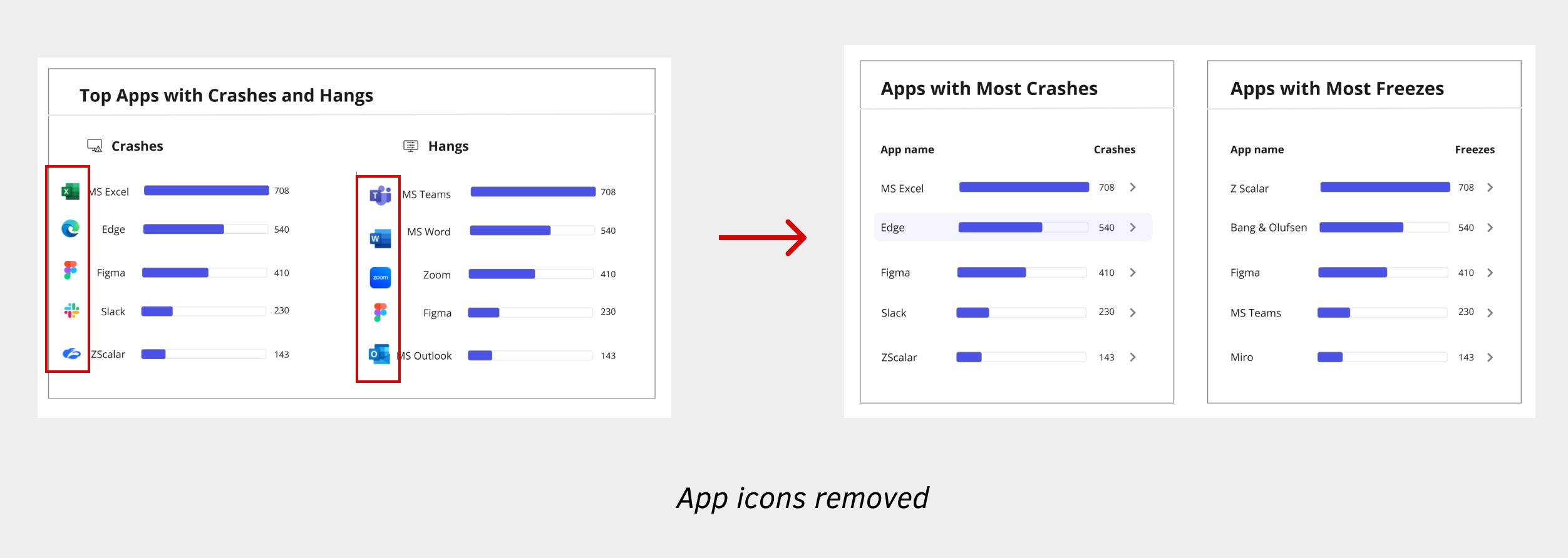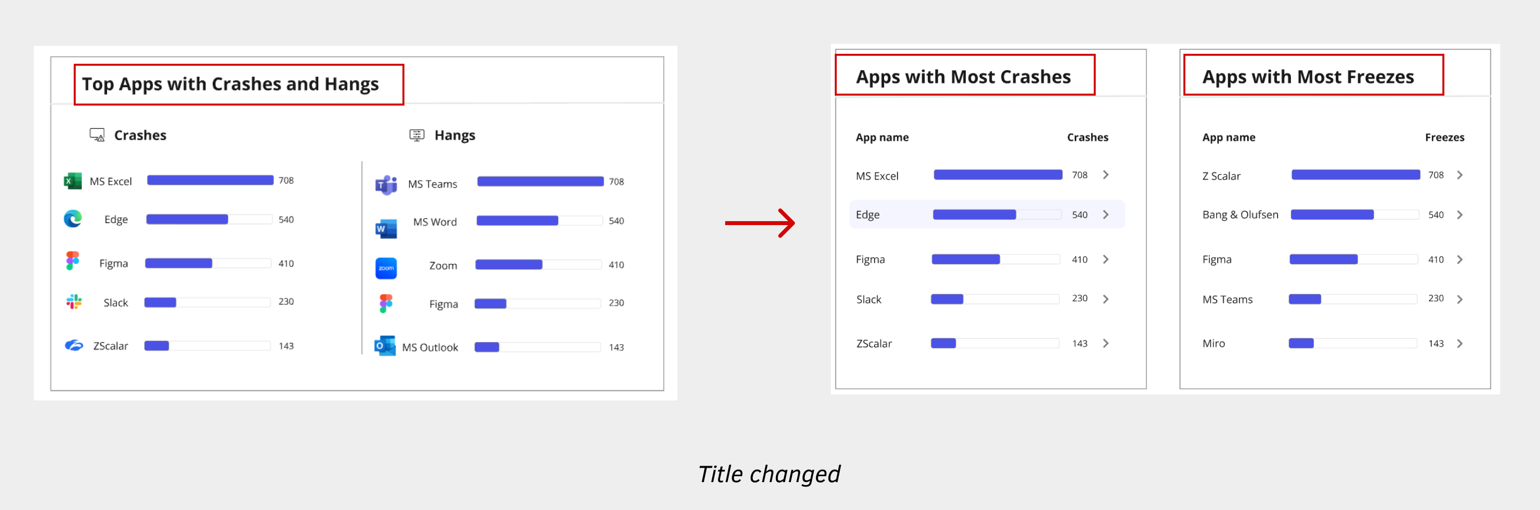 - Replace “Top Apps with Crashes” with “Apps with Most Crashes” as it clearly indicates the apps experiencing the highest number of crashes
