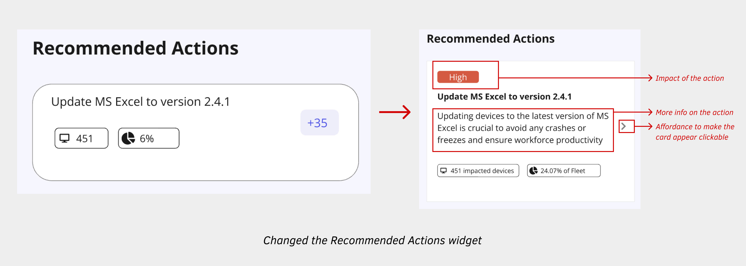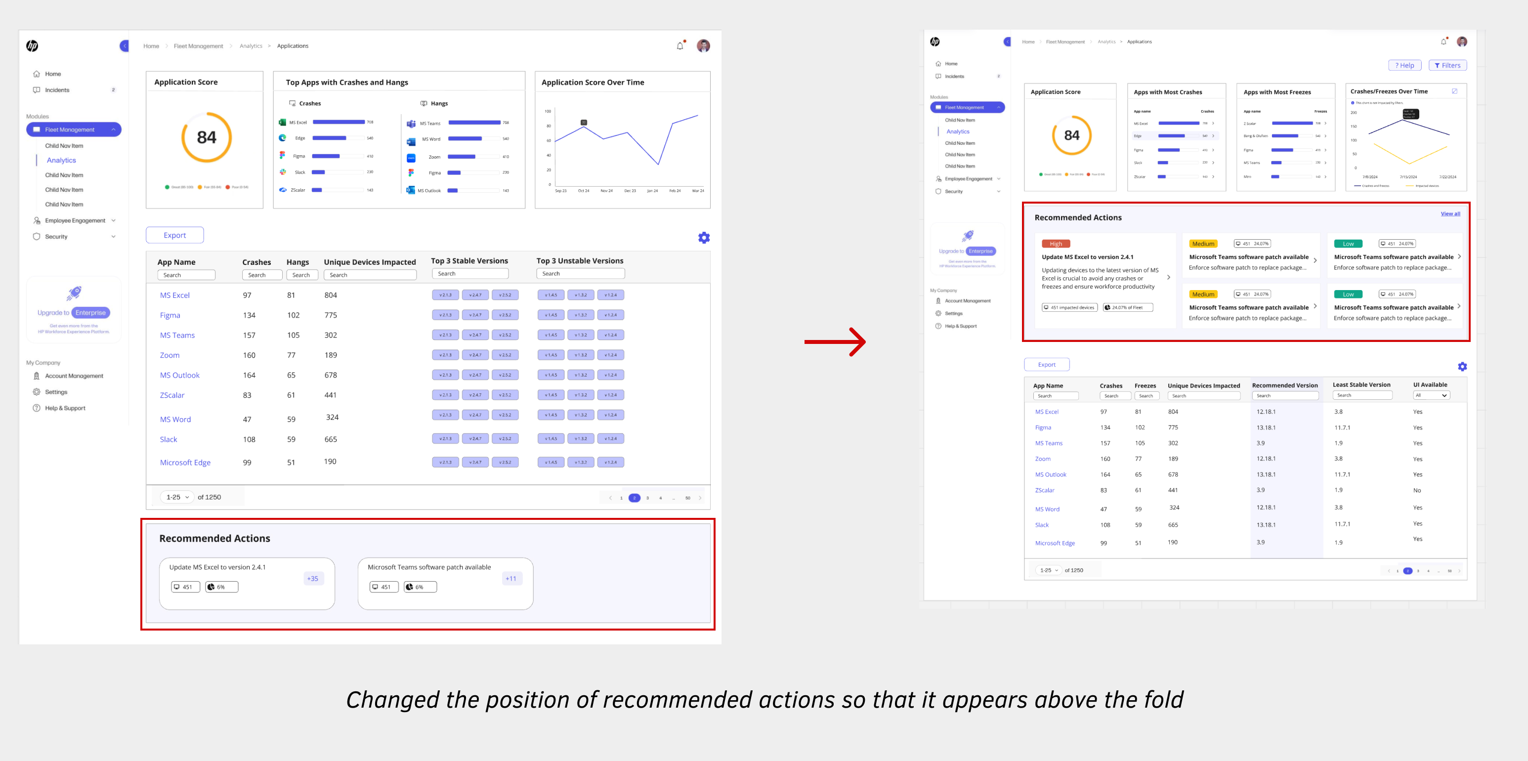 - They felt that the Recommended Actions were placed too far down and needed to be visible immediately since they are actionable.
